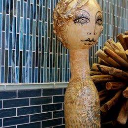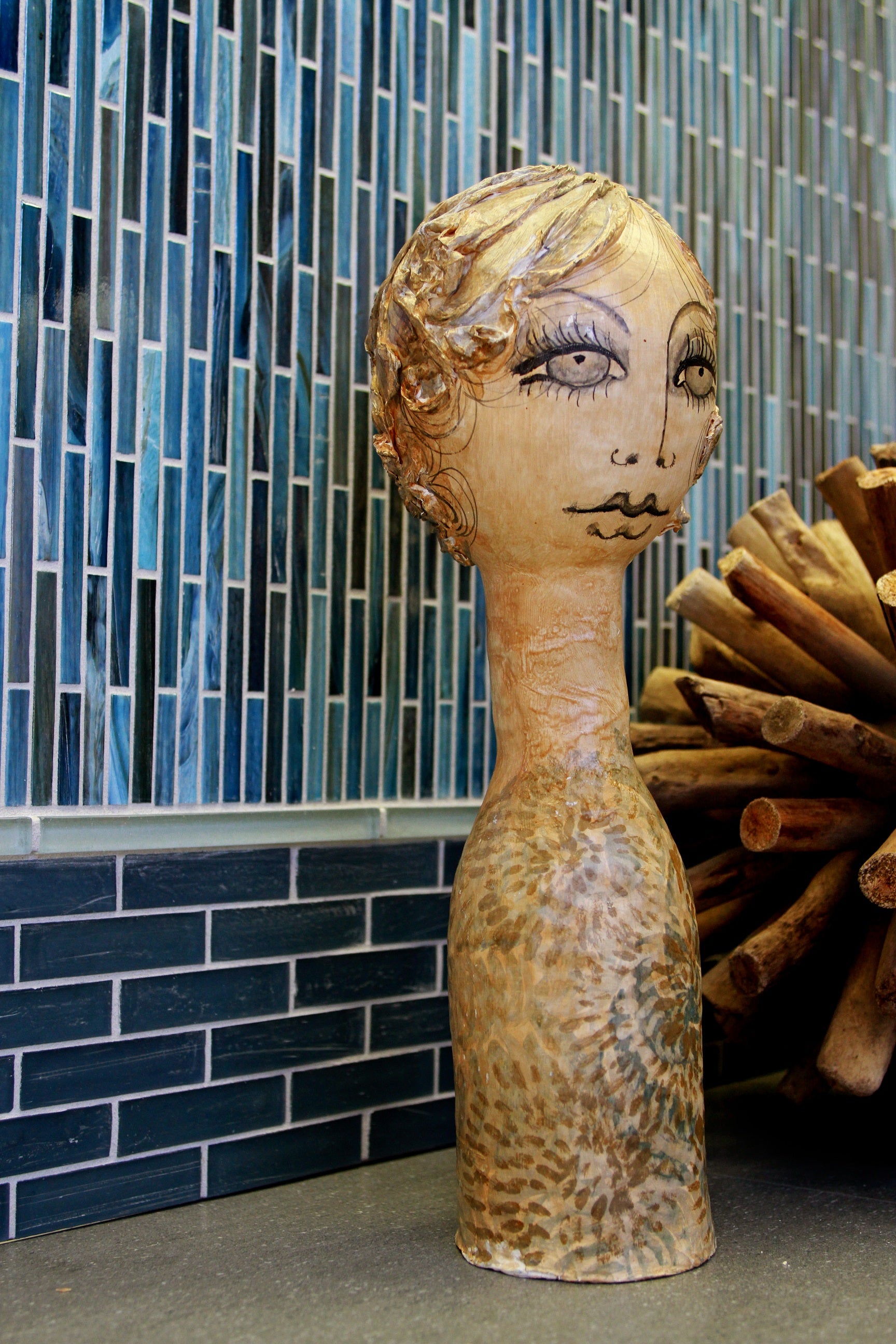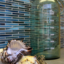 Agate 1/2x4 Portofino Pearl & Glass Bar liner in Cayman Blue Natural accent wall