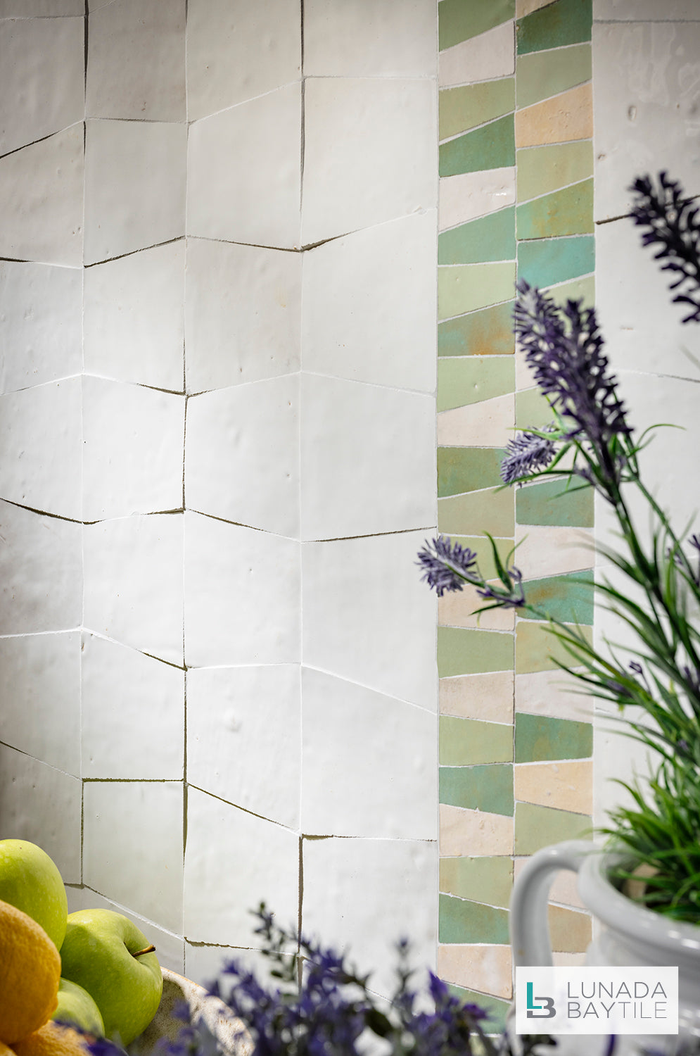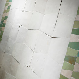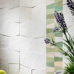 The Mistral collection reinterprets the heritage of Zellige tiles for the modern day. Time-honored methods perfected and passed over generations in Fez, Morocco create individual hand-chiseled tile pieces in modern shapes and patterns. Unique to Mistral, lead-free Italian glazes are applied to the Moroccan tiles to achieve a striking, fresh palette curated for today’s distinctive interiors and exteriors.