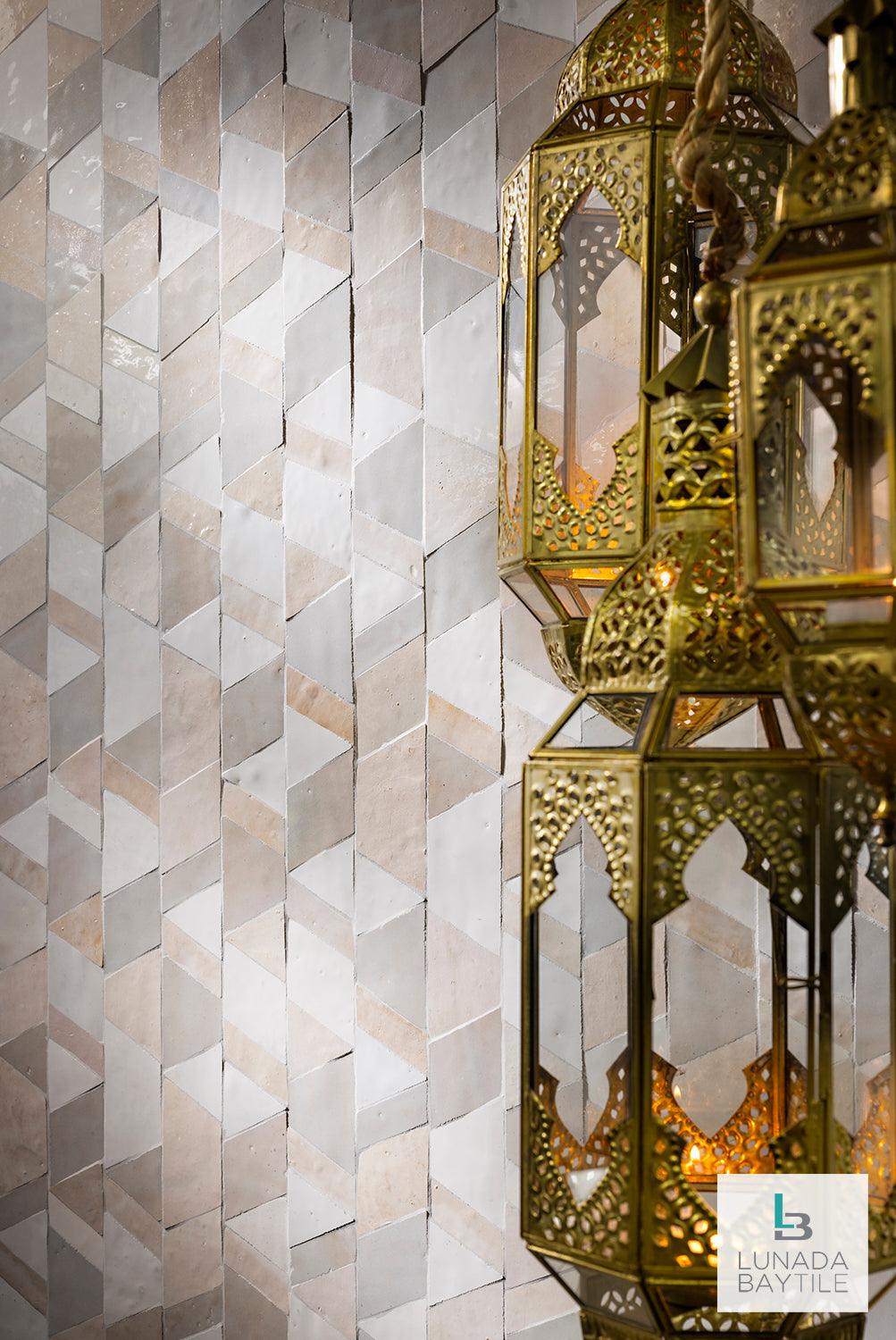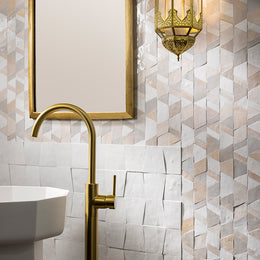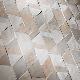 The Mistral collection reinterprets the heritage of Zellige tiles for the modern day. Time-honored methods perfected and passed over generations in Fez, Morocco create individual hand-chiseled tile pieces in modern shapes and patterns. Unique to Mistral, lead-free Italian glazes are applied to the Moroccan tiles to achieve a striking, fresh palette curated for today’s distinctive interiors and exteriors.