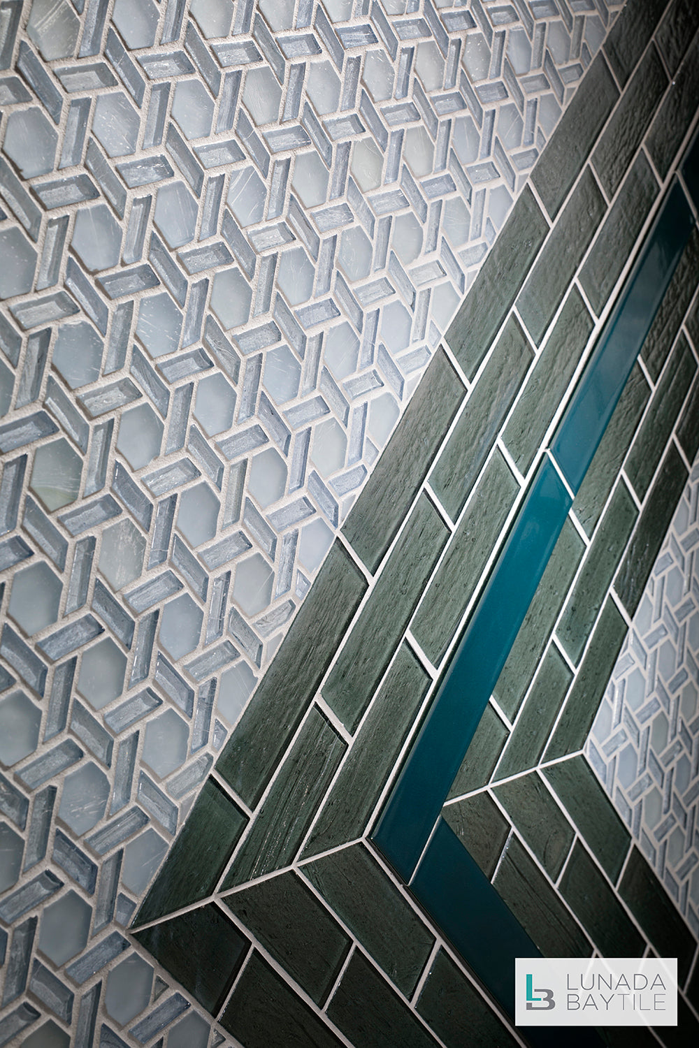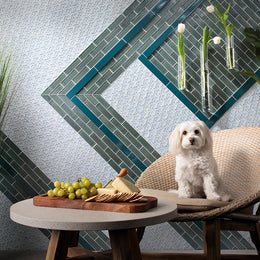 Elements Cane H2O, 1x3 Seaweed Pearl & Ka-nu Cruise Blue Liner were used to create this feature wall.