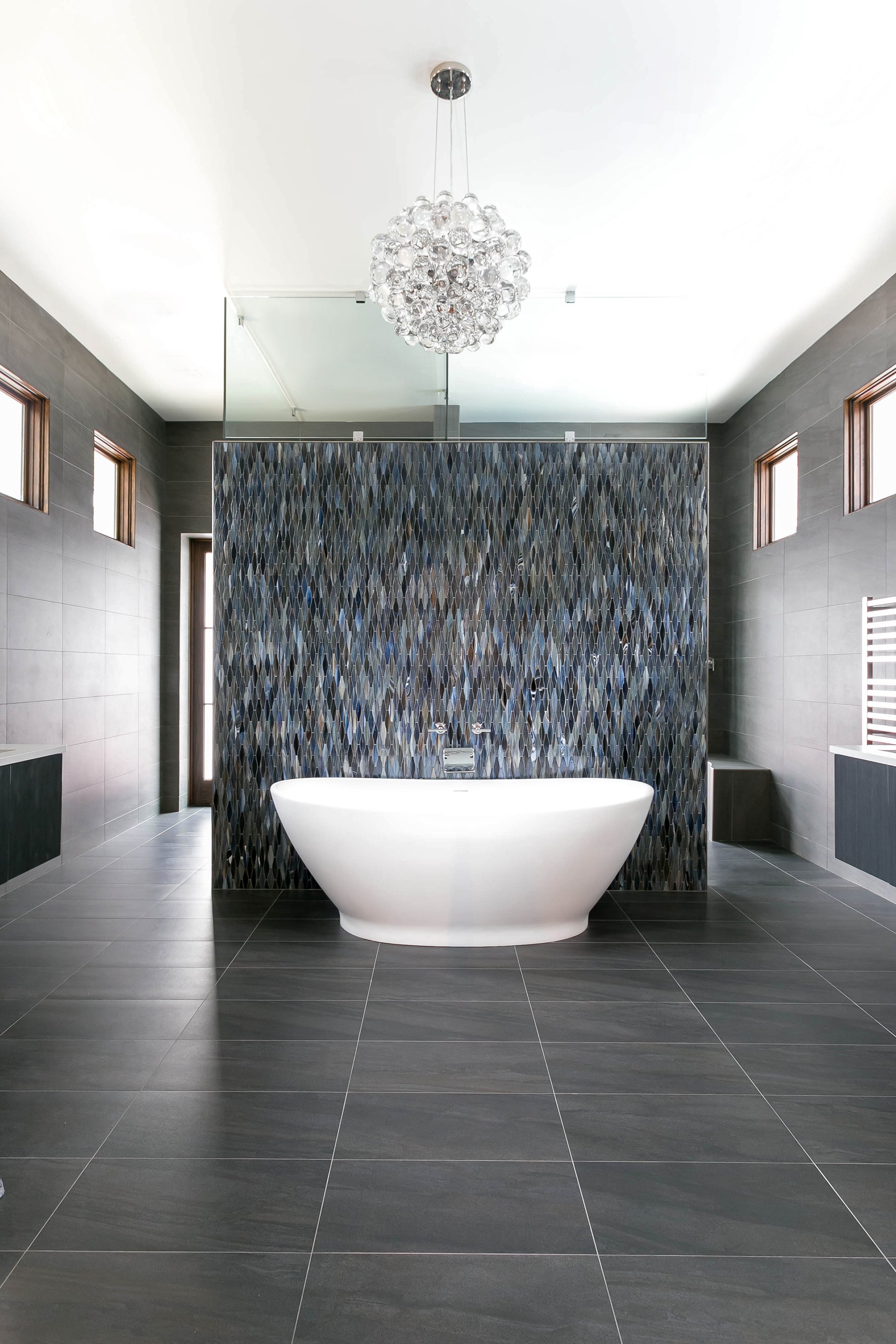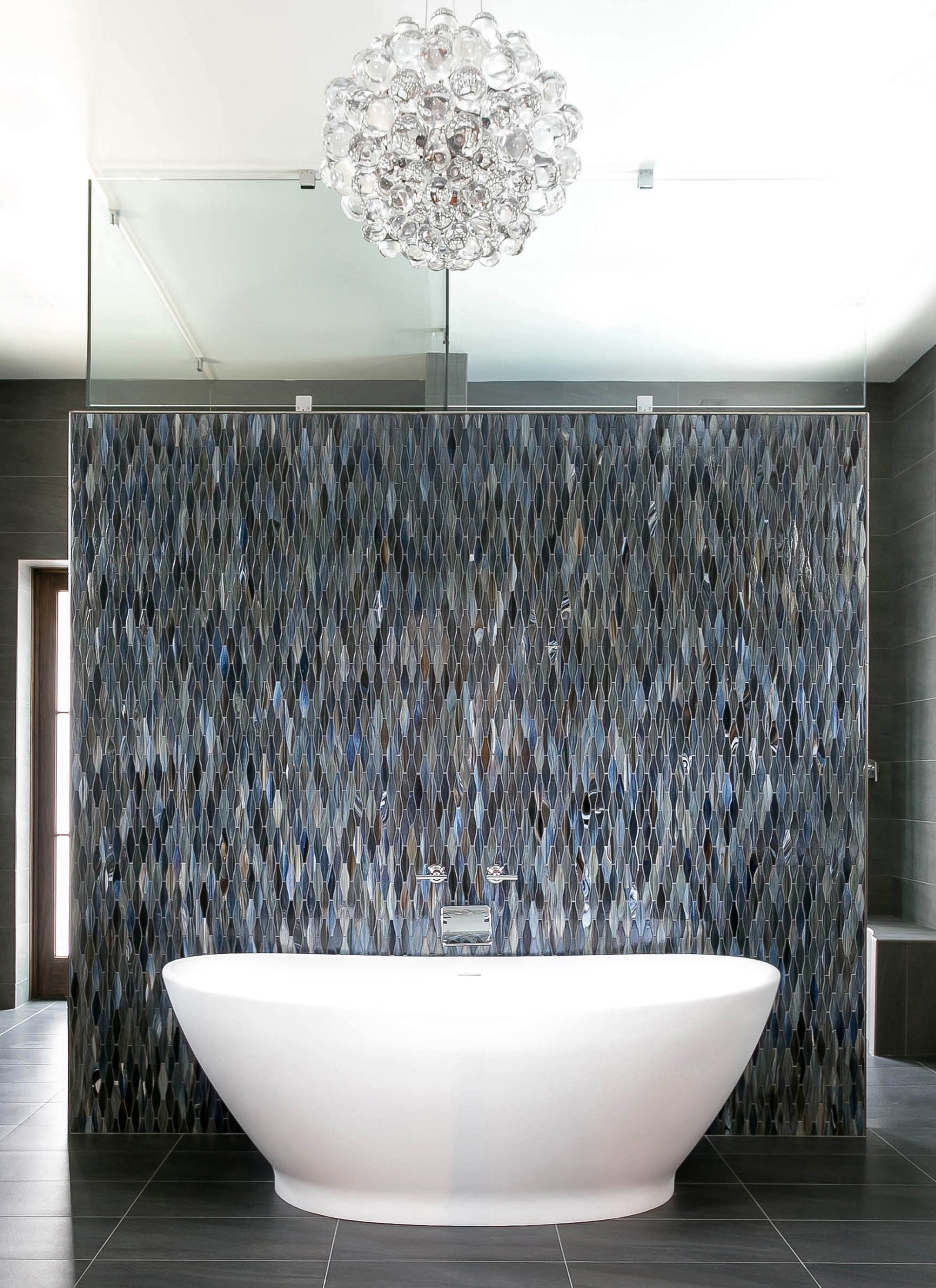 Agate Taiko in Abruzzo Pearl is featured on master suite wall.