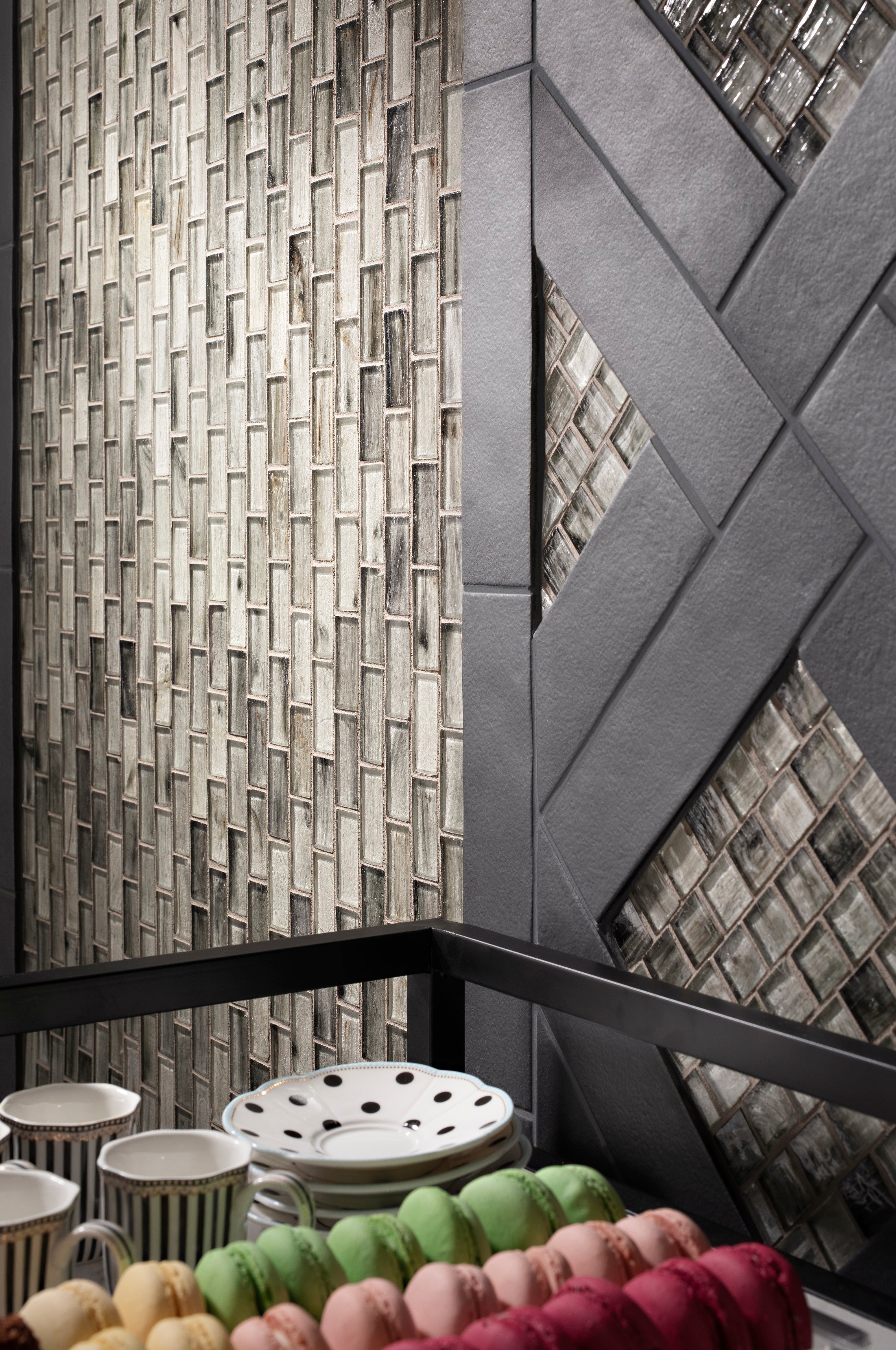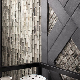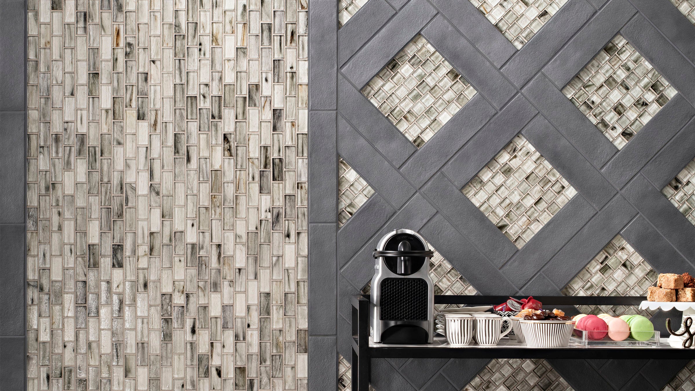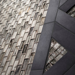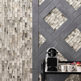 Haisen 1x1 Offset and 1x2 Brick in Starlight Natural with Graphite 2-1/2 x 9-1/2 creating the lattice pattern.