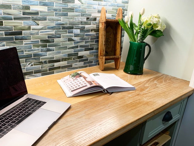 Agate 1x4 Brick in Pisa Pearl elevates this home office space.