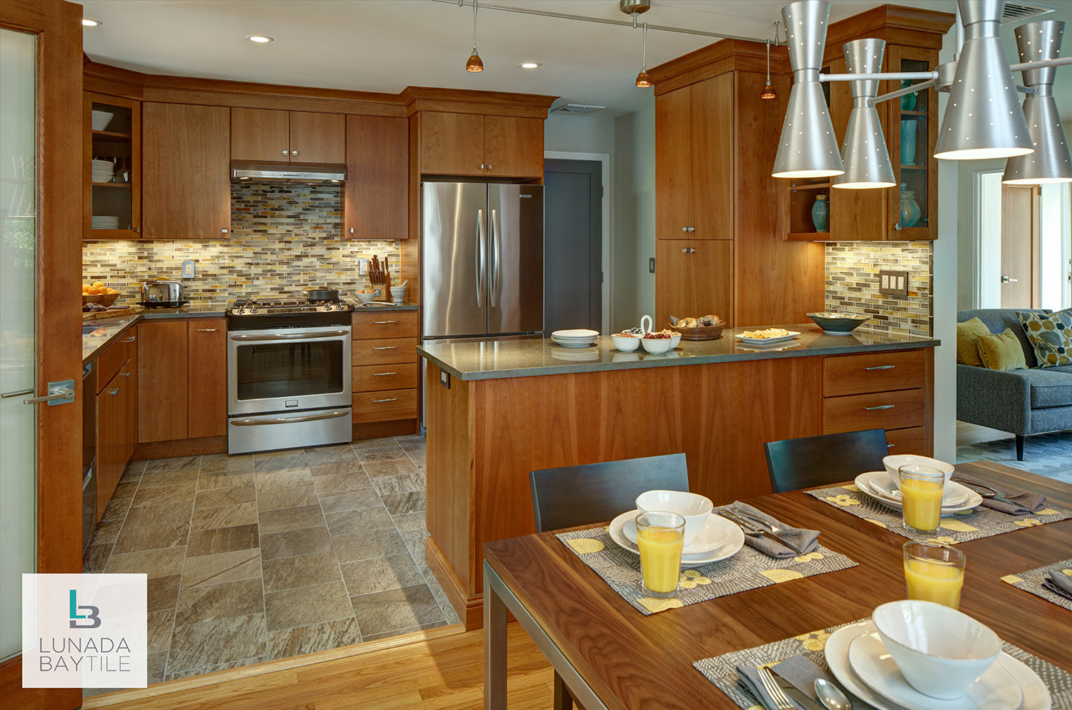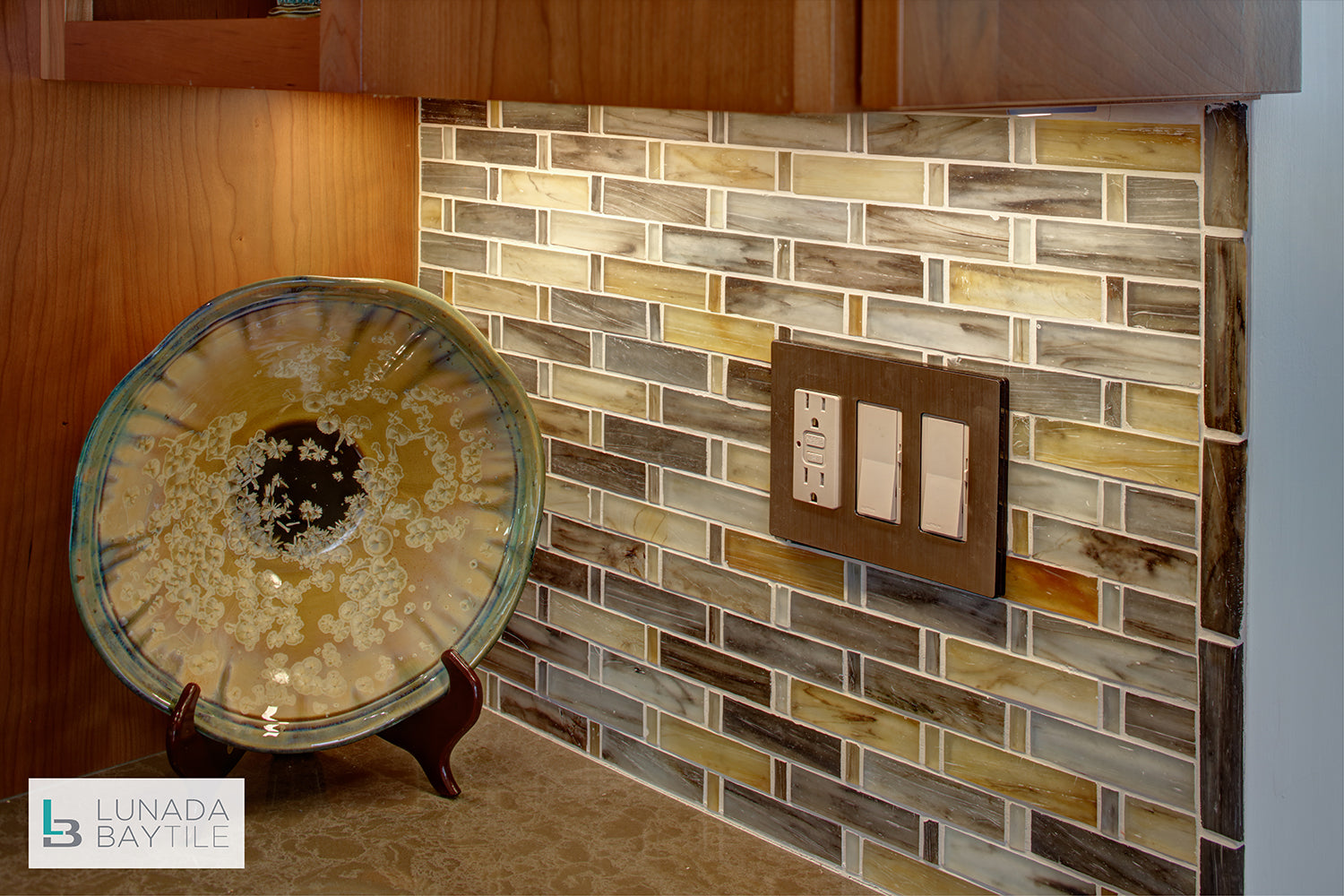 Tozen Tresse Indium Silk on kitchen backsplash.