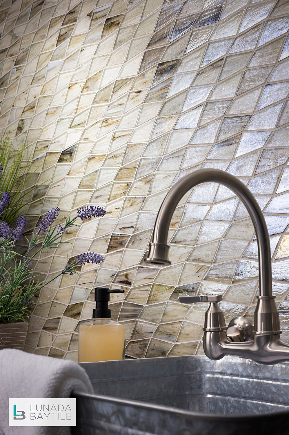 The Lapis series is a collection of semi-opaque glass mosaics that add a feeling of lightness and buoyancy to any design. The glistening colors available in these airy, delicately textured glass tiles elevate the space and rouse the imagination. Perfect for both residential and commercial spaces.