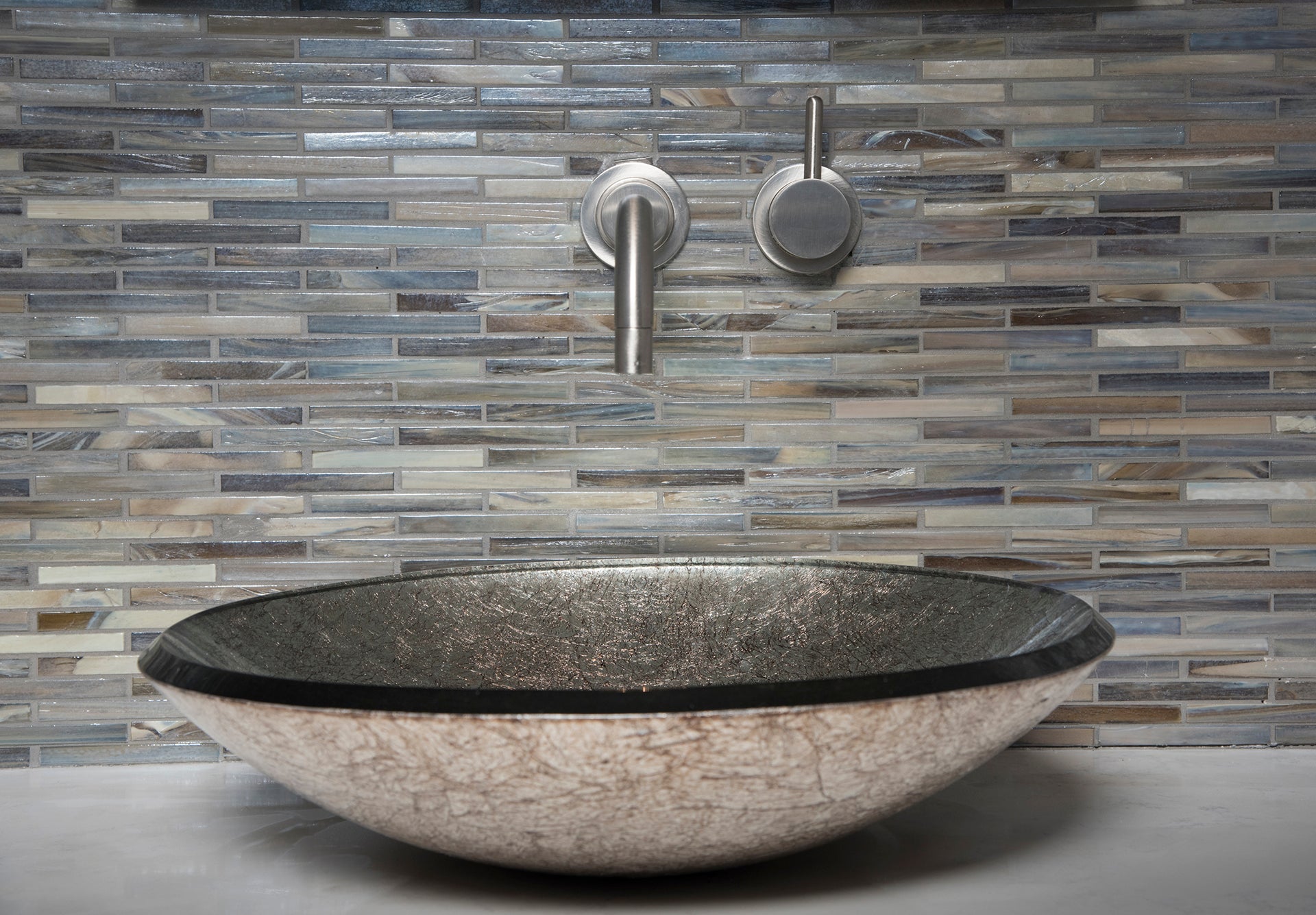 Agate ½ x 4 Brick Verona Pearl creates bathroom feature wall in the Lucia Container House - South Redondo Beach, CA.