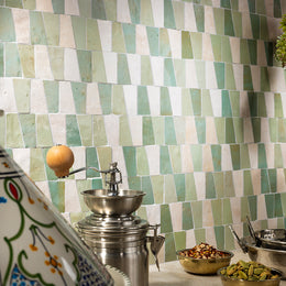 The Mistral collection reinterprets the heritage of Zellige tiles for the modern day. Time-honored methods perfected and passed over generations in Fez, Morocco create individual hand-chiseled tile pieces in modern shapes and patterns. Unique to Mistral, lead-free Italian glazes are applied to the Moroccan tiles to achieve a striking, fresh palette curated for today’s distinctive interiors and exteriors.