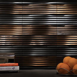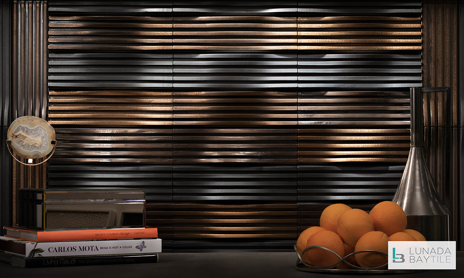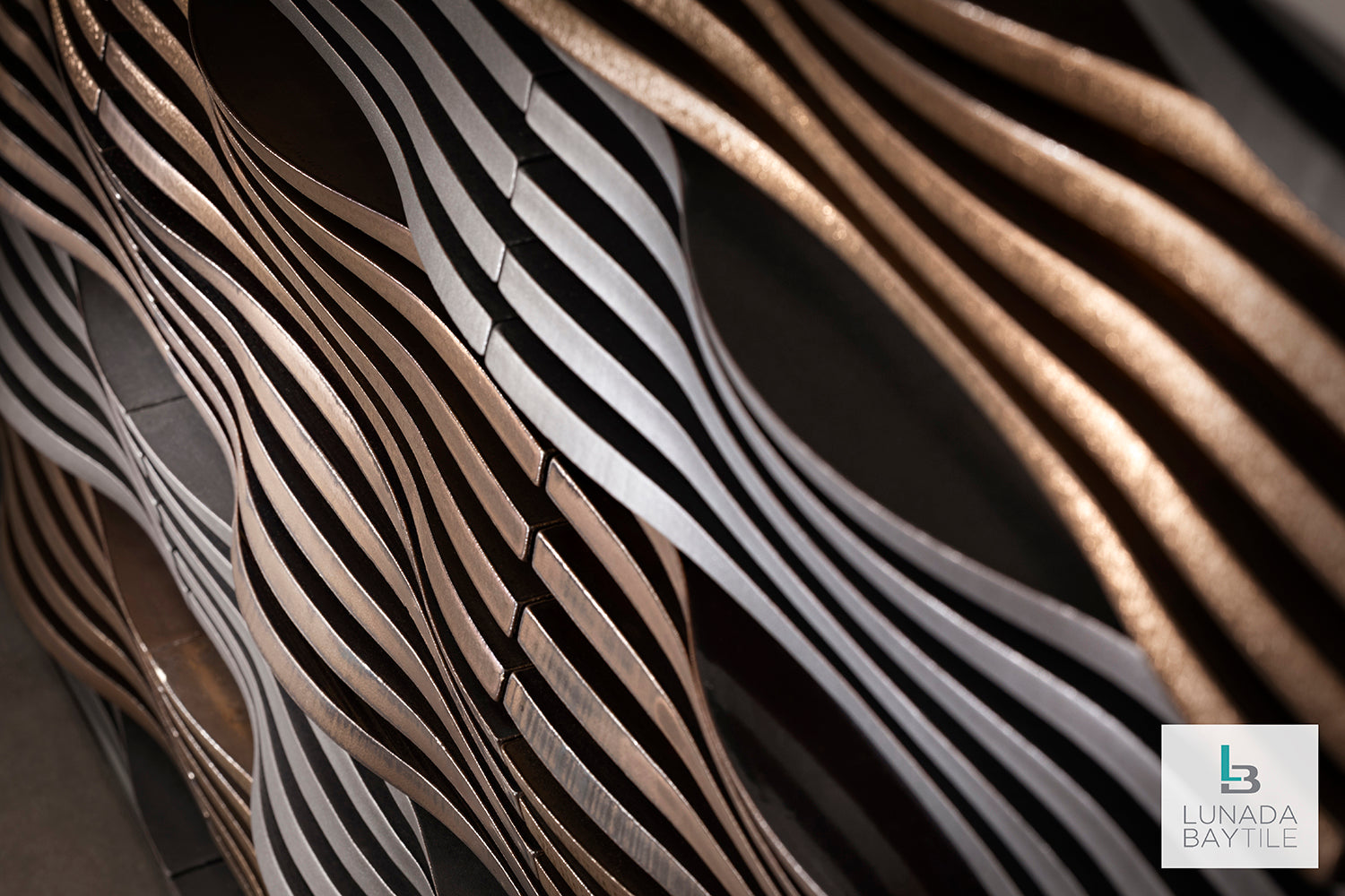 The three-dimensional ceramic tiles from the Momentum series feature sculptured lines of dramatic variation. An array of textures and patterns are possible through a single shape and color, or with a blend of shapes and/or colors puzzled together – the journey is yours to create.
