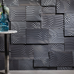 This three-dimensional ceramic tile series is inspired by the clay pans, rocky outcrops, and endless rippling dunes of the Namibia desert landscape. Each tile is made by an artisan using a special hand-sculpting technique to create tiles that are truly one-of-a-kind. The undulating patterns engage a sense of adventure and rejuvenation — like the discovery of a hidden oasis.