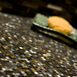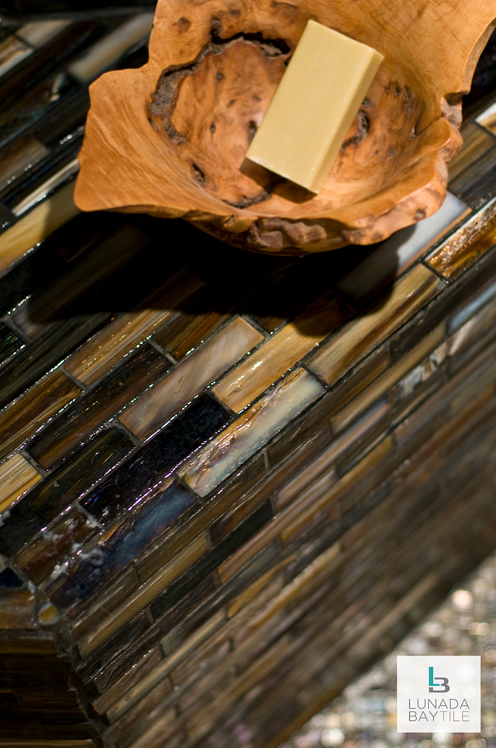 Shibui Raw Umber 1x4 Brick Wall & 1/2x1/2 Mini Mosaic Floor combined to make this shower.