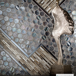 The Shinju Cambric Hex pattern in Olympia create an artistic, textured environment.