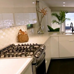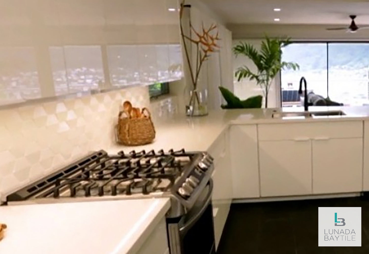 Shinju Crest Kumamoto shown in this kitchen backsplash.