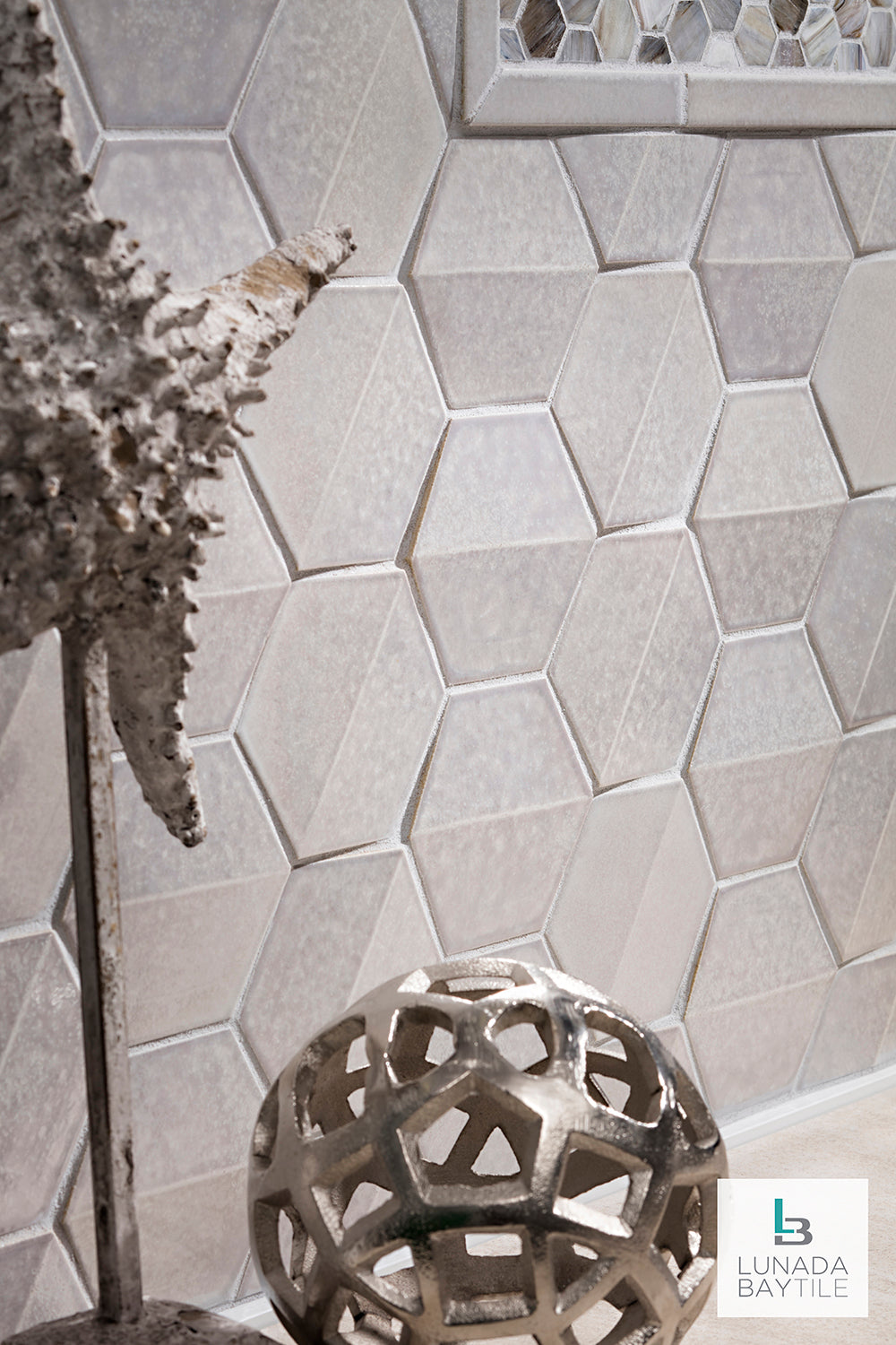 Shinju Crest & Liner in Moonstone with Agate 1" Hexagon in Bari Pearl.