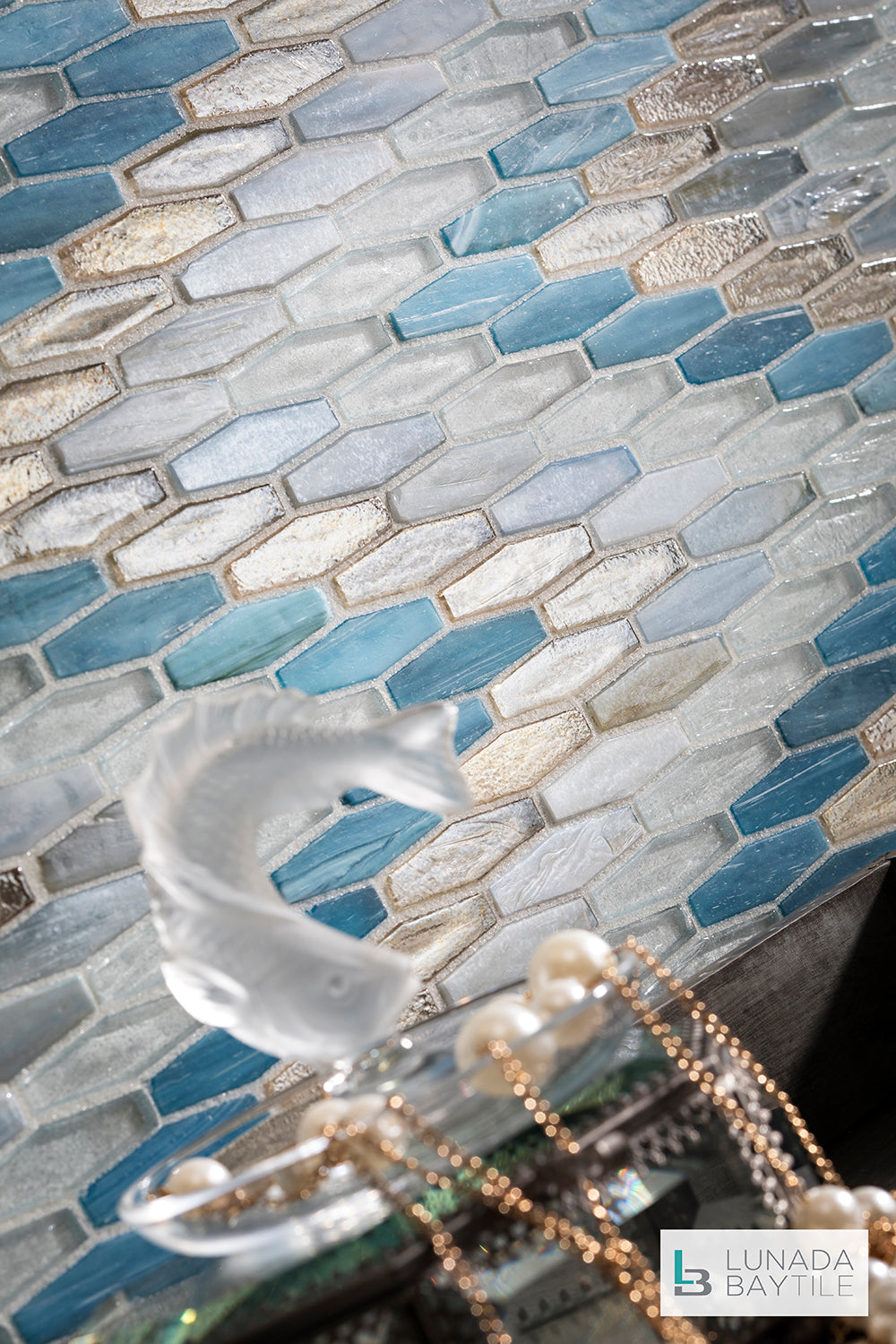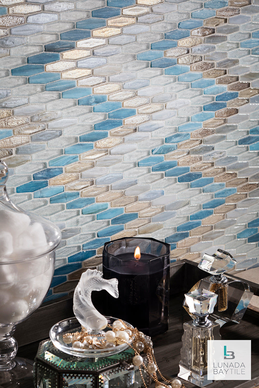 Lunada Bay Tile’s Textile series is inspired by some of the most remarkable vintage textile patterns and weaving techniques from around the world in pursuit of creating durable, glimmering, and eye-catching patterns in glass mosaic tile. Perfectly fitted for a variety of commercial and residential applications in traditional, transitional, and modern projects.