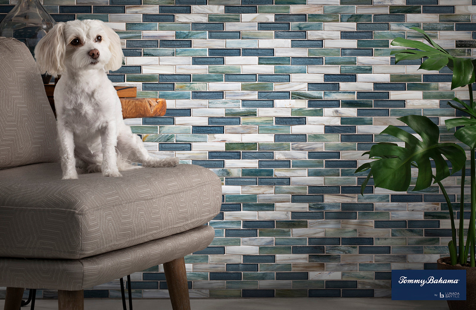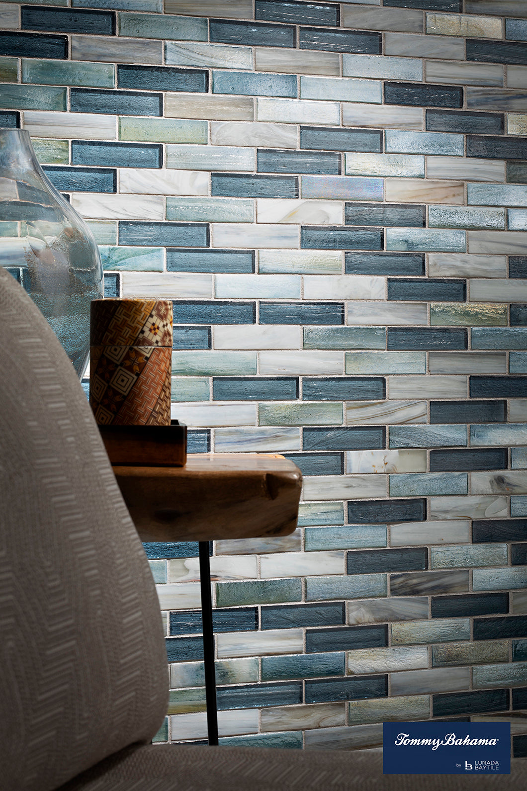 The Skyros colorway on the wall amplifies the natural beauty found around the island with its blend of gray, white, midnight and sky blues, and a hint of green.