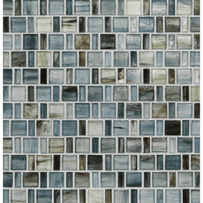 Tozen Japonaise pattern in Oxygen Natural spans the double vanity of this serene bathroom.