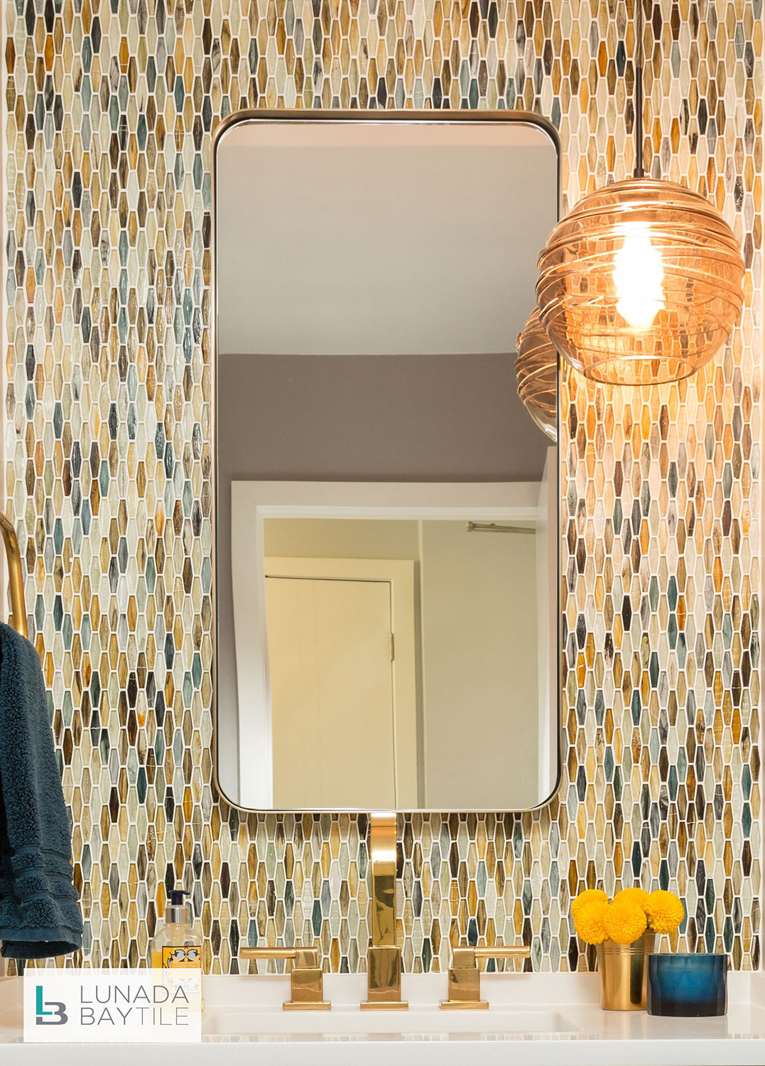 Tozen Martini in Ahou Natural on bathroom wall.